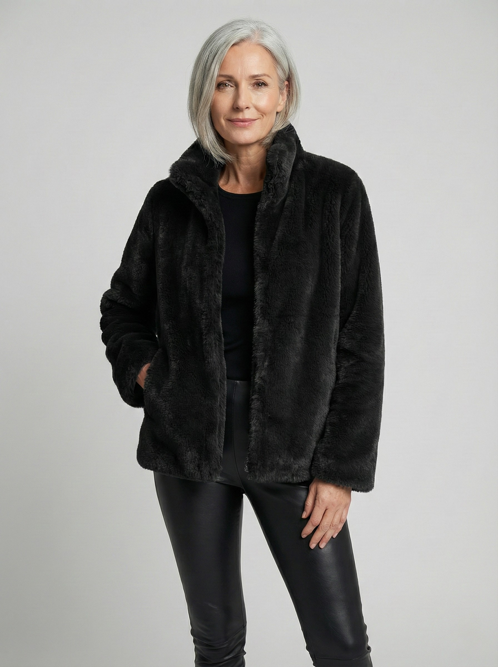 Soline™ | Veste Cocon en Fausse Fourrure - Col Montant Zippé